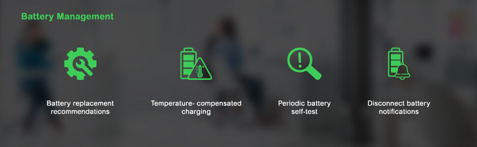 Thanks to the Switched Outlet Groups, it is possible to configure a phased/delayed power-on per UPS outlet group. This reduces the peak load on the UPS and brings it closer to the constant load, which limits oversizing of the UPS.