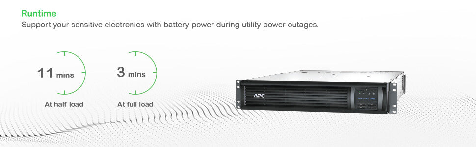 The internal battery cartridge (RBC43) can be replaced easily, safely and independently by the user. This without having to switch off the APC SMT3000RMI2UC or connected equipment. This way you can easily and cheaply extend the lifespan of the APC Smart-UPS and your equipment always remains online.