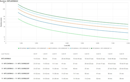 You can easily increase the number of minutes that the APC SRTL8KRM4UI can independently supply emergency power by connecting up to 9 additional external battery packs (SRTL180RM2UBP). A runtime of several hours is even possible.