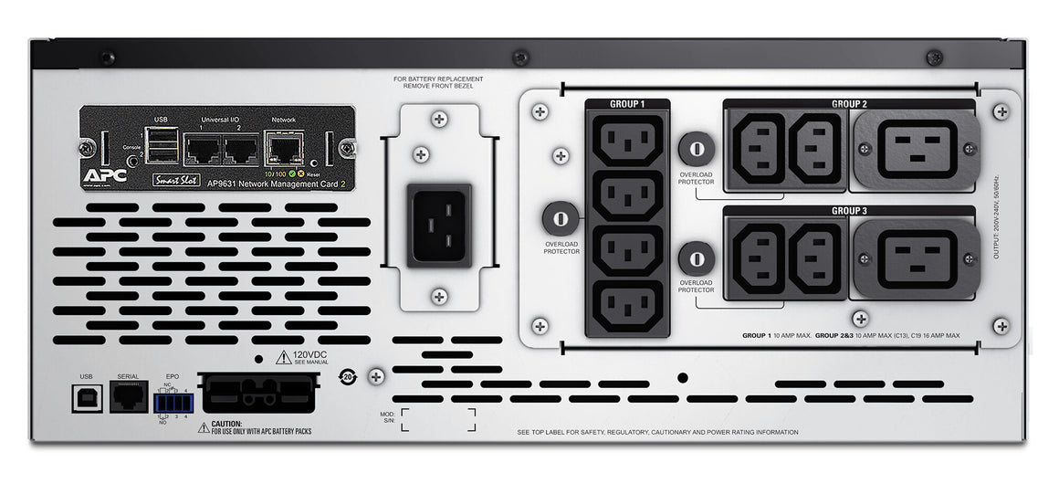 Thanks to the pre-installed network card (ap9641), you can easily connect the APC UPS to the network. This allows you to monitor and manage the UPS remotely (SNMP) and the UPS can send a shutdown signal to multiple physical and/or virtual servers using PowerChute Network Shutdown software.
