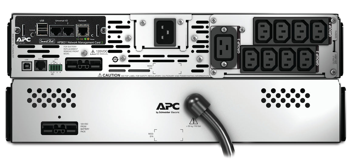 You can easily increase the number of minutes that the APC SMX UPS can independently supply emergency power by connecting external battery packs (SMX120RMBP2U). A runtime of several hours is even possible.