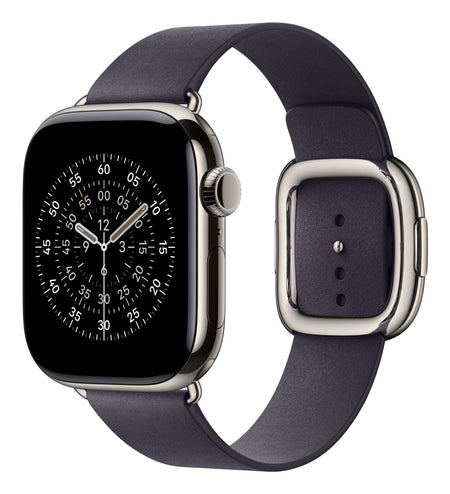 The Modern Buckle with FineWoven is exquisitely crafted for an elegant look, using a durable micro‑twill that has a soft, suede‑like feel. What looks like a solid buckle is actually a two‑piece magnetic closure that’s delightfully simple to secure. We also added an inner layer of Vectran weave for strength and stretch resistance.