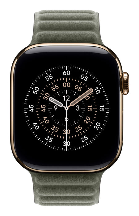 Made from durable micro‑twill, the Magnetic Link with FineWoven has a soft, suede‑like feel. It wraps elegantly around the wrist and magically attaches with moulded magnets that gently flex to help maintain security and comfort throughout the day.