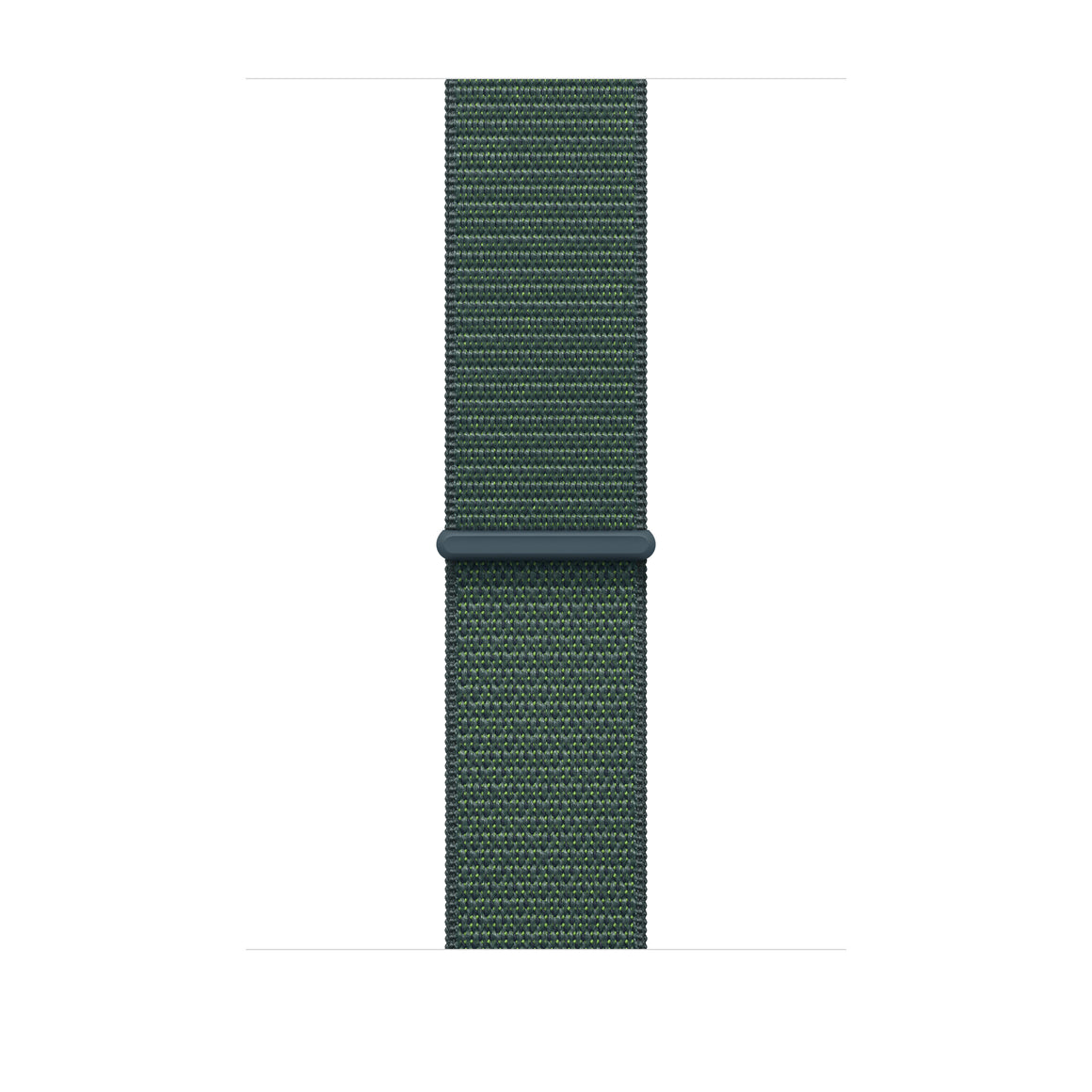 This strap is carbon neutral. The Sport Loop contains 45% recycled content by weight, 100% of manufacturing electricity is covered by clean energy, and 50% or more of all carbon-neutral Apple Watch products are shipped without aeroplanes.º