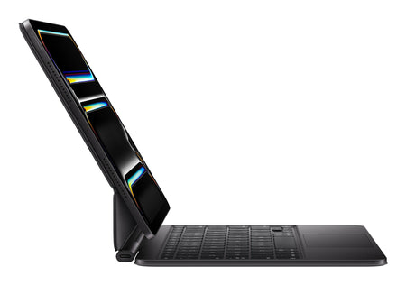 Magic Keyboard for iPad Pro delivers an amazing typing and trackpad experience in a sleek, portable new design with an aluminum palm rest. The keyboard includes a 14-key function row for quick access to screen brightness, volume controls, and other features, and a USB‑C connector for pass-through charging. The floating cantilever design smoothly adjusts to multiple viewing angles.