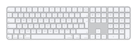 Magic Keyboard with Touch ID and Numeric Keypad delivers a remarkably comfortable and precise typing experience. It features an extended layout, with document navigation controls for quick scrolling and full-size arrow keys, which are great for gaming. The numeric keypad is also ideal for spreadsheets and finance applications. It’s wireless and features a rechargeable battery that will power your keyboard for about a month or more between charges. It pairs automatically with your Mac, so you can get to work straightaway.