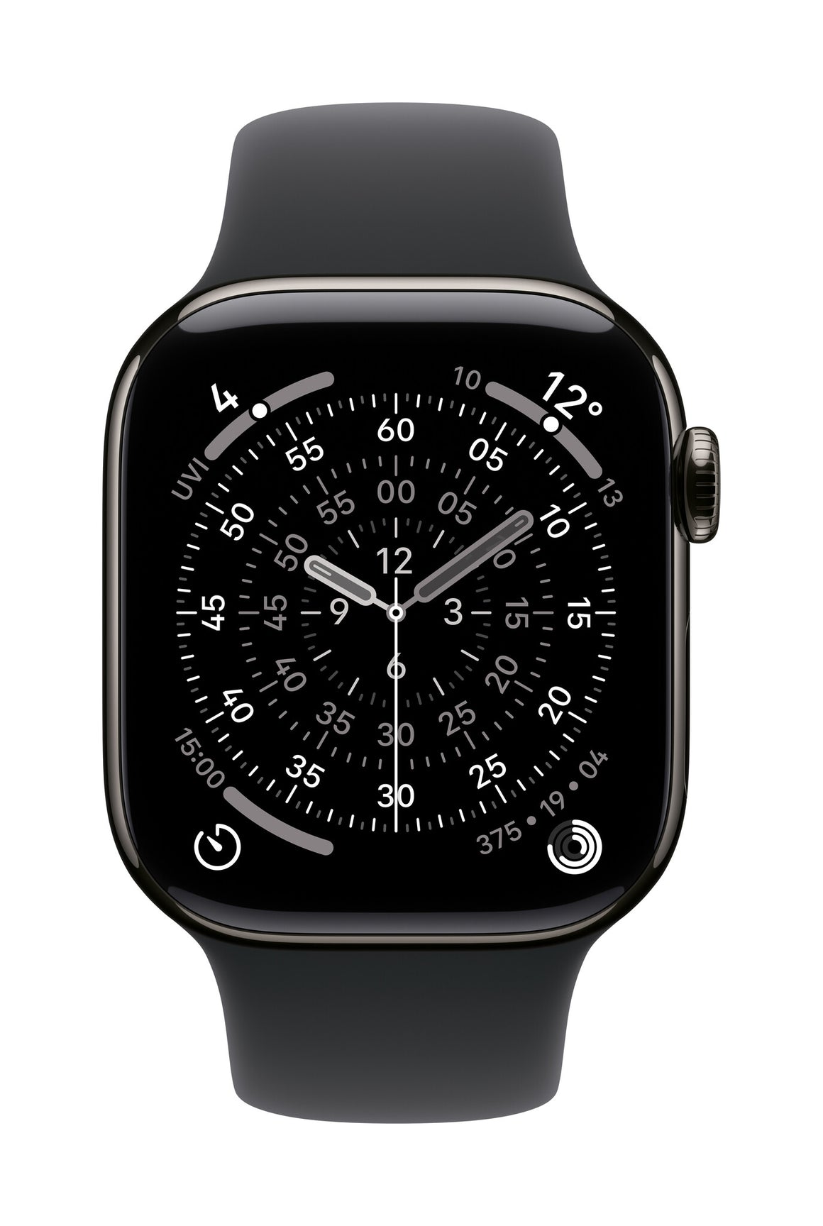 Made from a custom high-performance fluoroelastomer, the Sport Band is durable and strong, yet surprisingly soft. The smooth, dense material drapes elegantly across your wrist and feels comfortable next to your skin. An innovative pin-and-tuck closure ensures a clean fit.