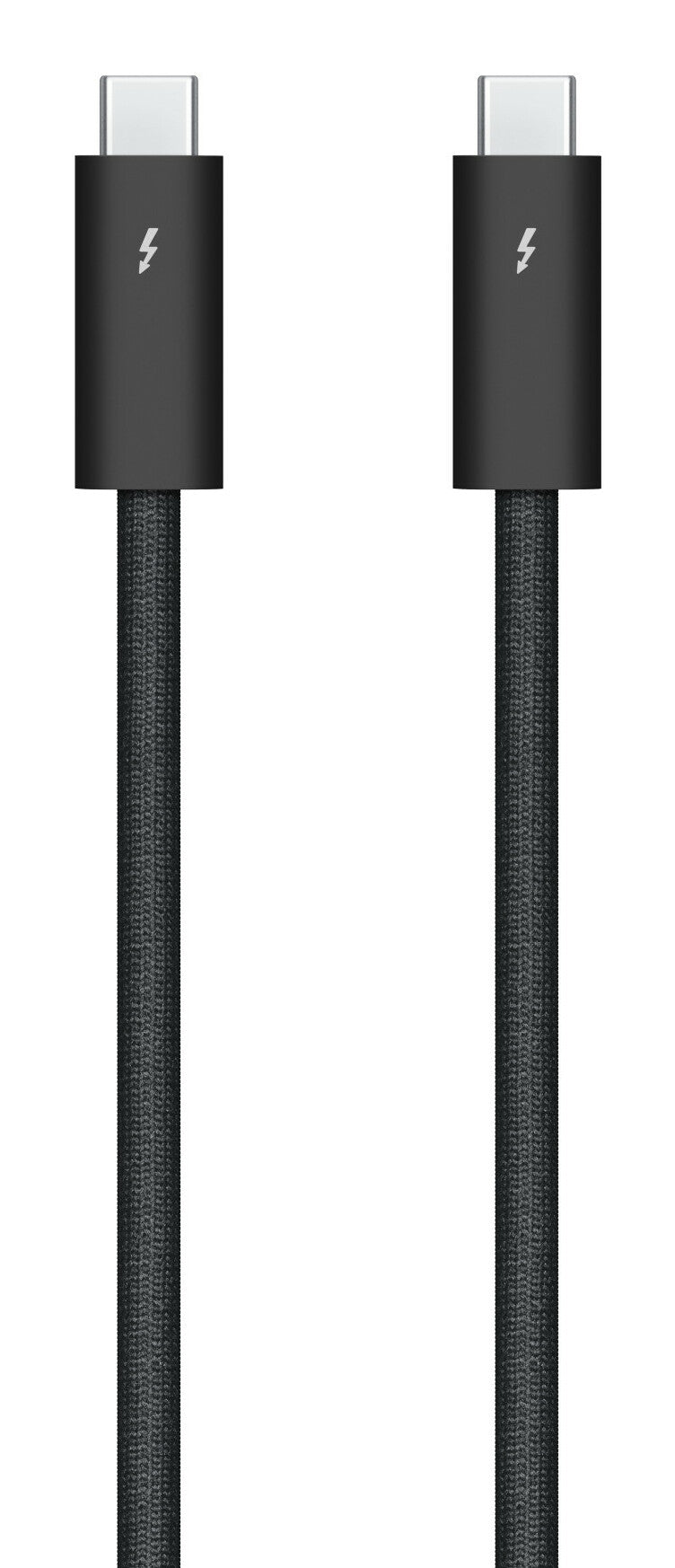 Featuring a black braided design that coils without tangling, this 1.8-metre cable supports Thunderbolt 3, Thunderbolt 4 and USB 4 data transfer up to 40Gb/s, USB 3 data transfer up to 10Gb/s, DisplayPort video output (HBR3) and charging up to 100W. Use this cable to connect a Mac with Thunderbolt 3 or 4 (USB-C) ports to Thunderbolt (USB-C) and USB displays and devices such as Studio Display, Pro Display XDR, docks and hard drives. You can also use this cable to connect iPhone 15 Pro to Mac.