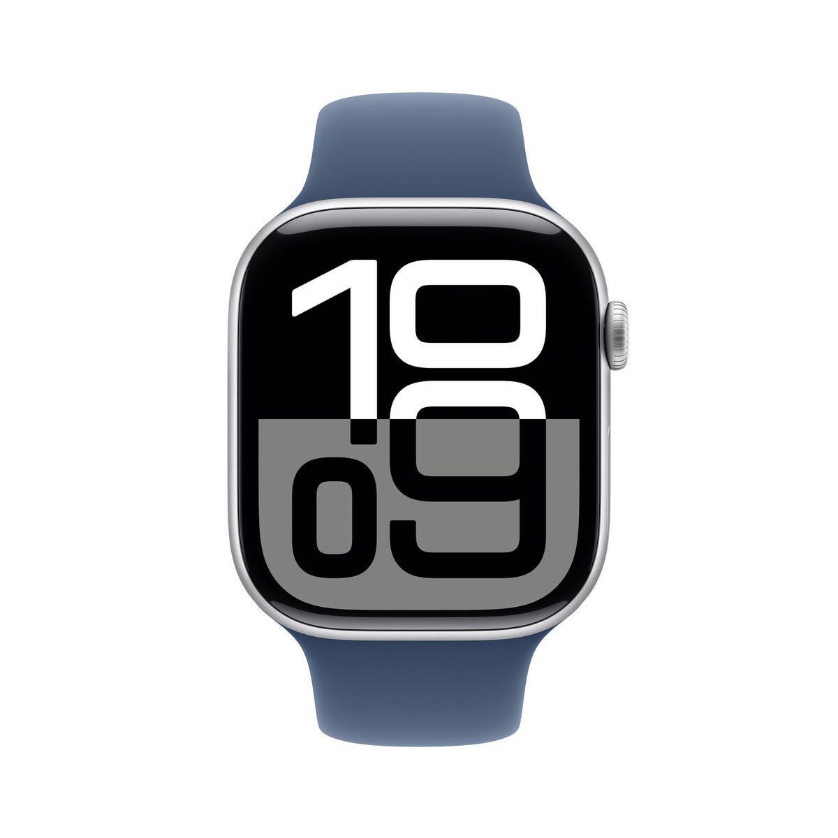 Apple Watch Series 10 GPS + Cellular 46mm Silver Aluminium Case with Denim Sport Band - S/M