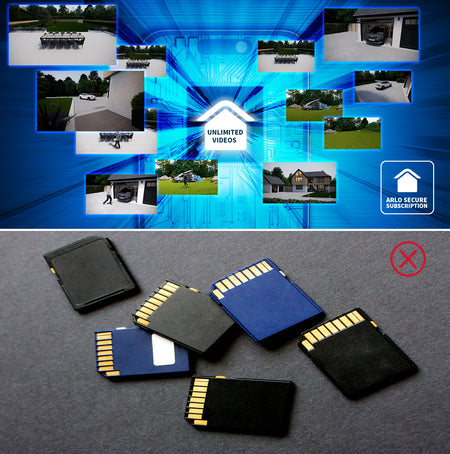 Choose a safer way to store your videos. With an Arlo Secure Subscription never run out of memory or worry about SD cards being stolen with your personal videos. Keep them safely saved in the cloud and look back at your library anytime from the app.