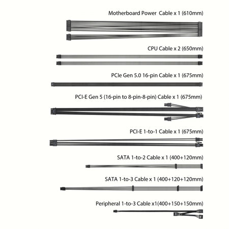 CPU, PCIe, SATA, Peripheral (Molex) |