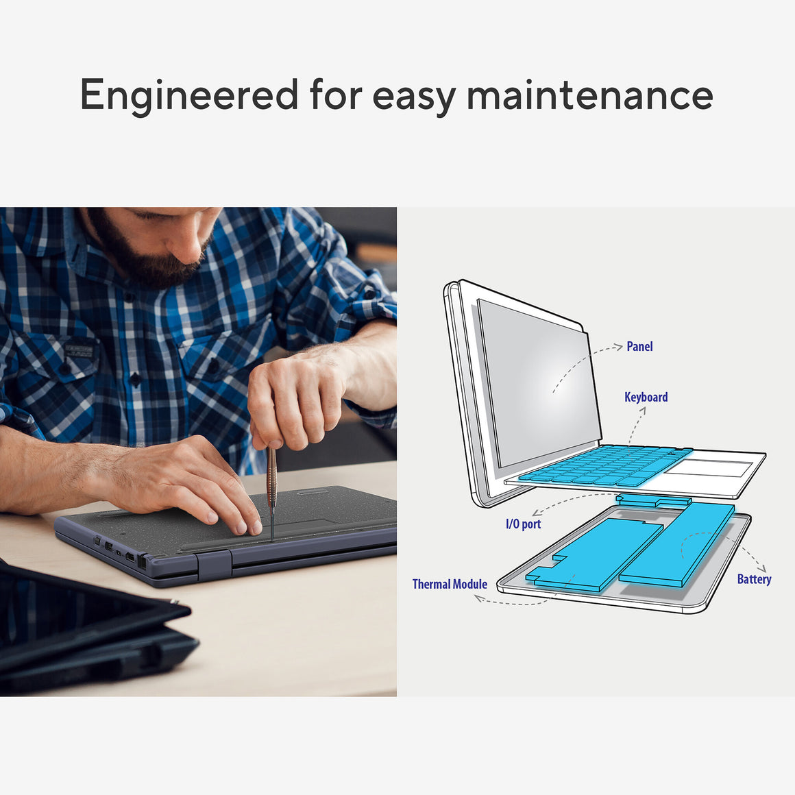 ASUS BR12CT-C81XA-3Y Intel® N N150 Laptop 31 cm (12.2") WUXGA 8 GB LPDDR5-SDRAM 128 GB UFS Wi-Fi 6 (802.11ax) Windows 11 Pro Education Black, Grey