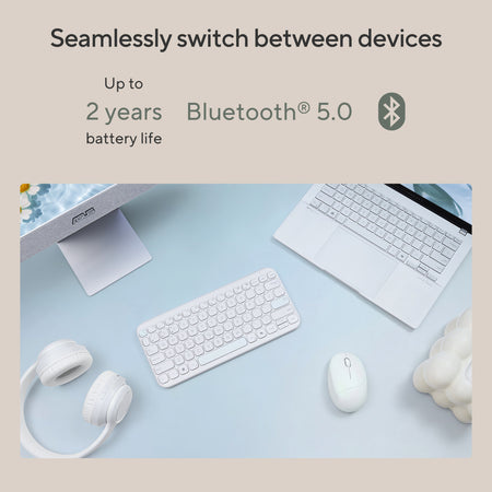 ASUS Marshmallow Keyboard KW100 is a compact, ultrathin wireless keyboard with a minimalist design that blends in well in the home or office. Compatible with Windows, ChromeOS, MacOS, iOS and iPadOS devices, ASUS Marshmallow Keyboard offers outstanding versatility that makes it ideal for daily use.