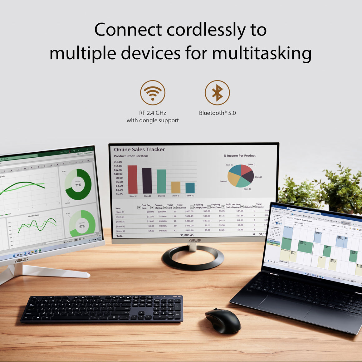 Modern life is busy, and it’s all too easy to fumble and drop stuff when rushing around the office. That’s why we designed ASUS SmartO Mouse with a built-in carrying band. This elasticated loop hooks onto a finger and ensures that ASUS SmartO Mouse stays secure as you wander to your next workspace. It’s simple but effective — a small boost for everyday mobility.