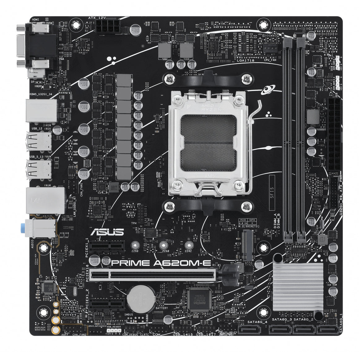 PRIME A620M-E-CSM is engineered with an array of hybrid fan headers and two ounce copper PCB design to ensure your rig stays cool and stable under intense workloads.