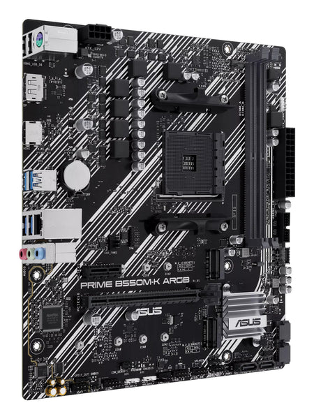 PRIME B550M-K ARGB offers a total of two M.2 slots, one of which supports data-transfer speeds of up to 64Gbps via PCIe 4.0, enabling quicker boot-up and app load times with OS or application drives.