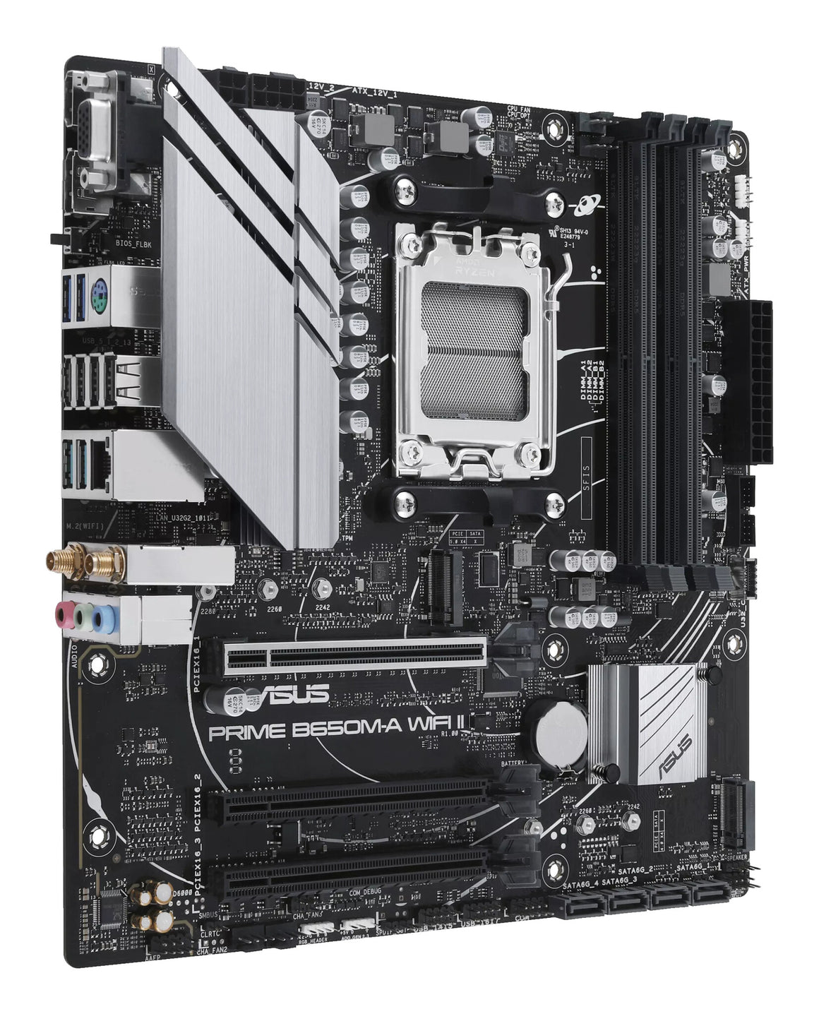 ASUS Prime series motherboards are expertly engineered to unleash the full potential of AMD Ryzen 7000-series processors. Boasting a robust power design, comprehensive cooling solutions and intelligent tuning options, PRIME B650M-A WIFI II provides users and PC DIY builders with a range of performance optimizations via intuitive software and firmware features.