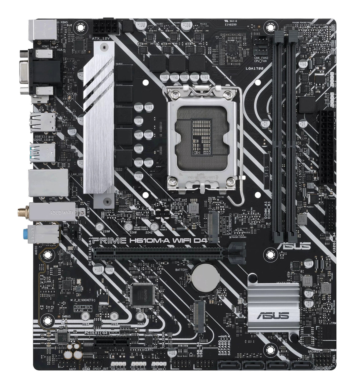 Prime H610M-A WIFI D4 offers two M.2 slots that support data-transfer speeds of up to 32 Gbps via PCIe 3.0, enabling quicker boot-up and app load times with OS or application drives.