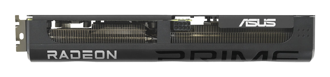 The Prime Radeon™ RX 9060 XT features a 2.5 slot design with a carefully arranged layout for the shroud, heatsink and heat pipes to let the three Axial-tech fans leverage chassis side-panel ventilation and deliver optimal thermal performance.