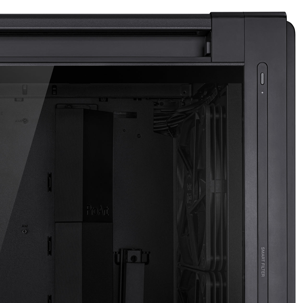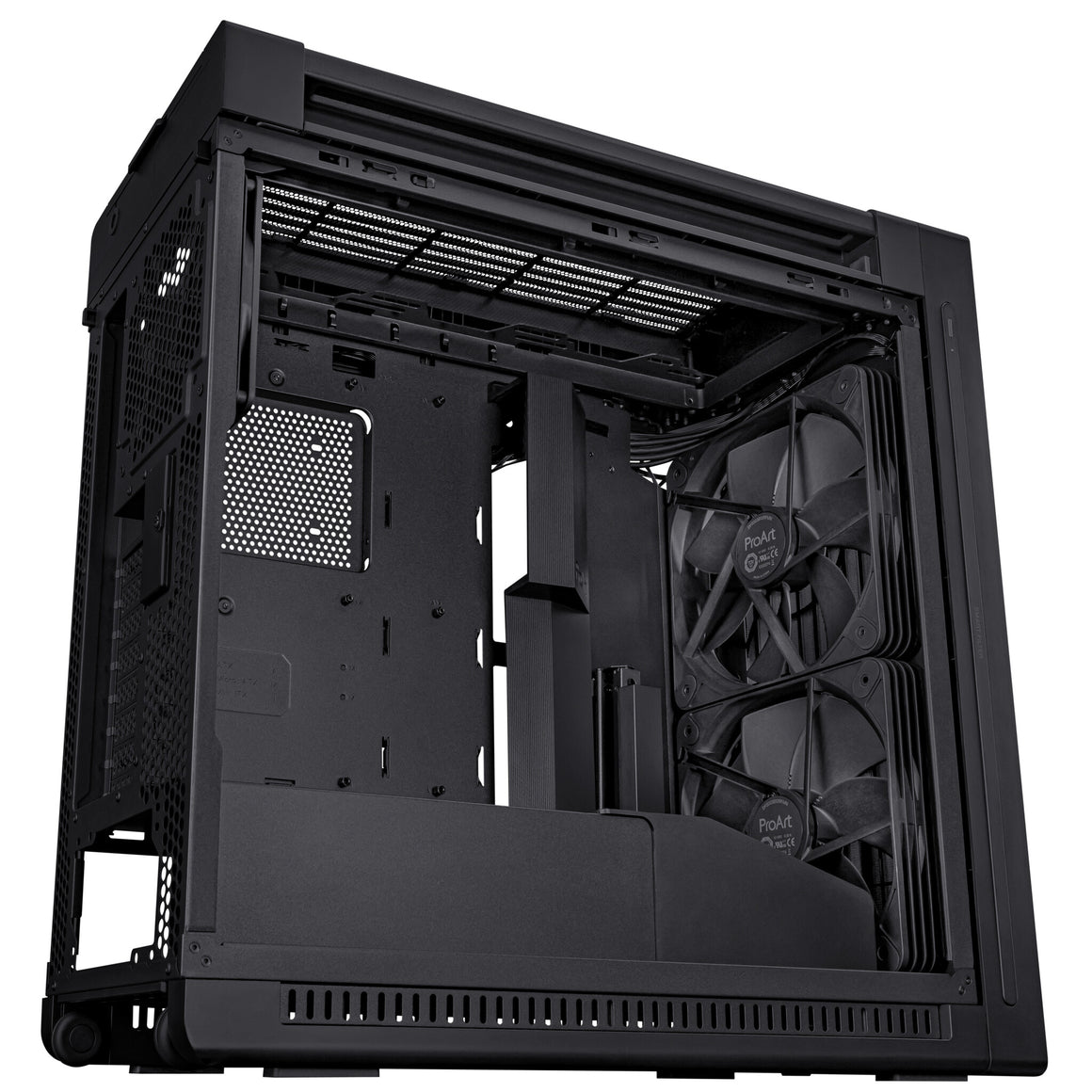Engineered for optimal airflow and enhanced cooling, the ProArt PA602 case is a dream for creative professionals seeking focused workflows. With a front panel designed for maximum air intake, thick pre-installed 140 mm rear fan and two 200 mm front fans, an integrated fan hub and support for a 420 mm radiator on the top, it delivers top-tier performance right out of the box. The ProArt PA602 caters to those in search of high-end thermal solutions. Meanwhile, a minimalist design ensures creators can work with fewer distractions.