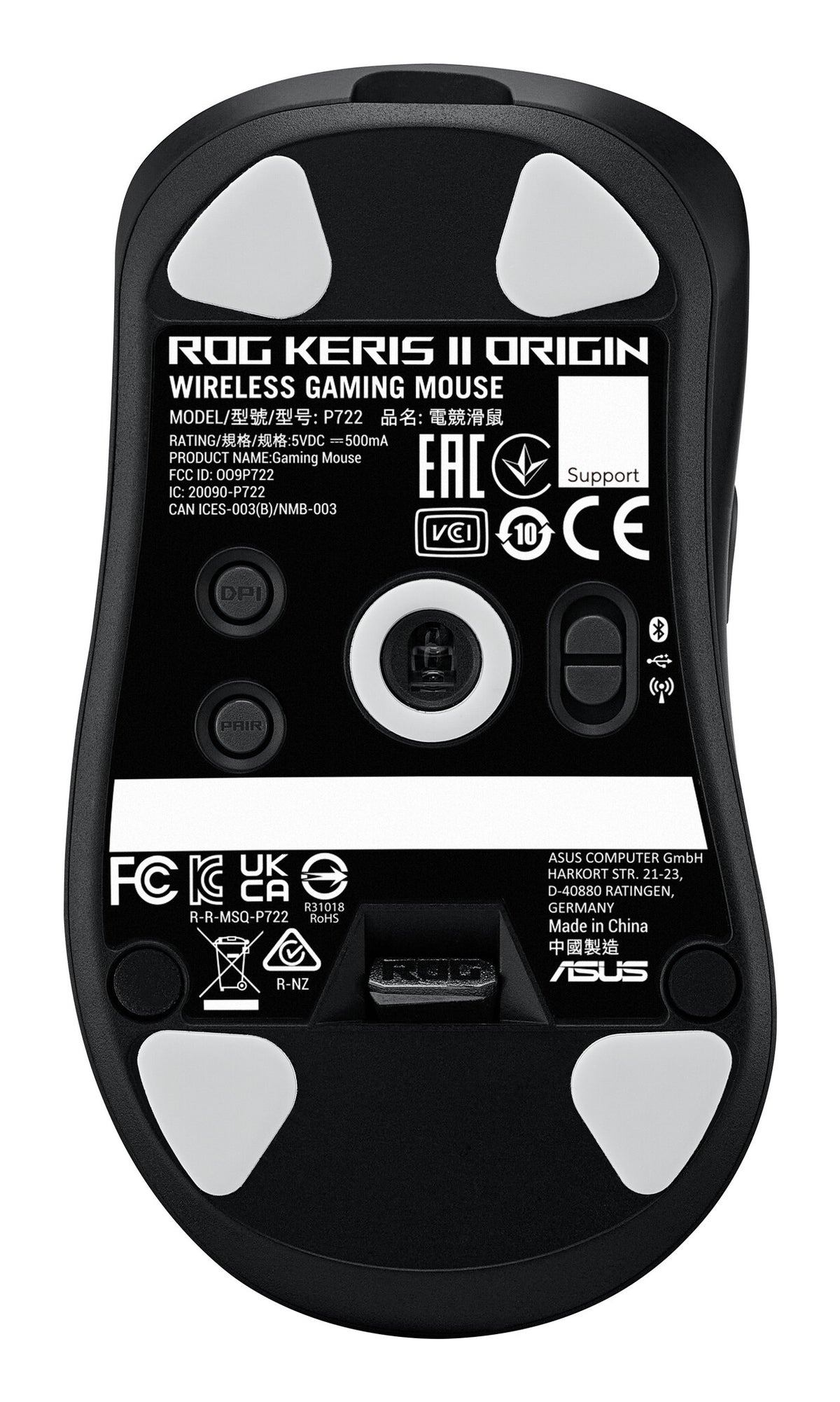 The ROG Keris II Origin wireless gaming mouse delivers a lethal combination of performance and gaming immersion. With an esports-pro-tested ergonomic shape and weighing just 65 grams, the Keris II Origin offers unmatched control, dazzling 3-zone RGB lighting, and other industry-leading features to help you unleash your potential in any game.