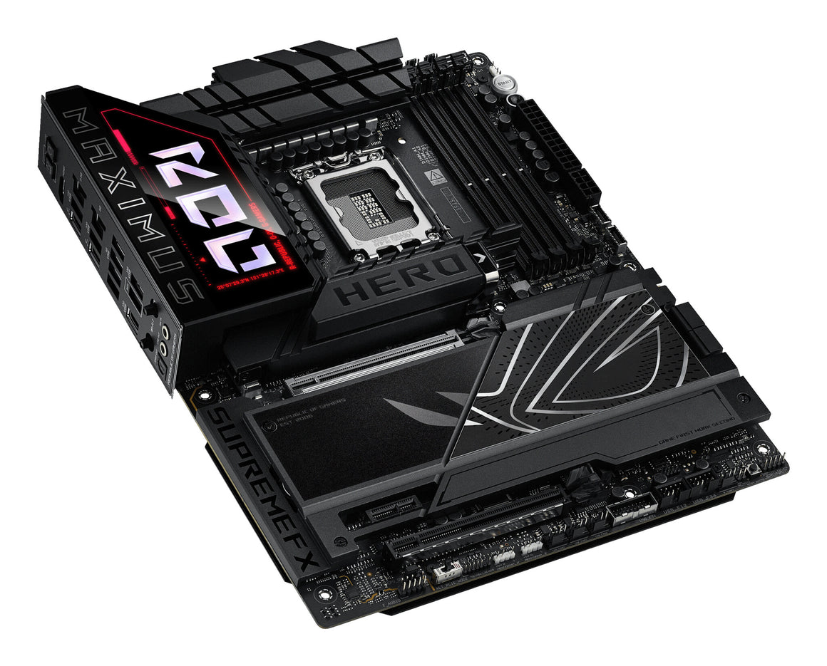 The ROG Maximus Z890 Hero unleashes the performance of Intel® Core™ Ultra processors (Series 2) via exclusive AI PC technologies, robust power delivery, optimized thermal management, extensive PCIe® 5.0 support, DDR5 slots and WiFi 7. Meanwhile, angular design elements and Polymo II Lighting accents around the ROG logo deliver a signature aesthetic that elevates system design.