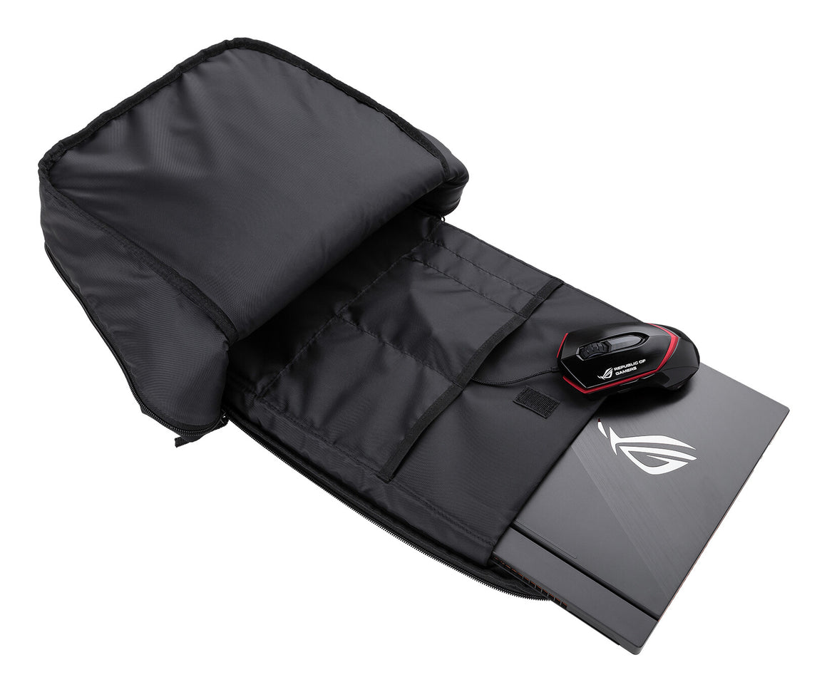 ROG Backpack BP1501G gives you the most comfort with a large area-covered AirMesh on the back of the backpack.