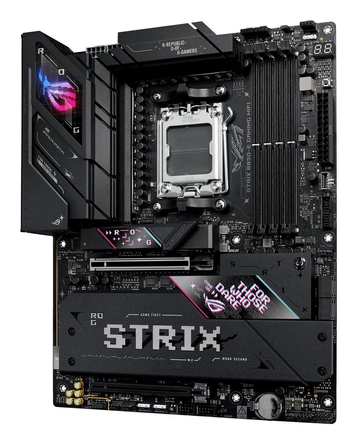 When only the fastest will do, a Strix B850 motherboard delivers. With USB 20Gbps onboard along with robust overclocking¹ capabilities, featuring faster dual-channel DDR5 memory support, AMD EXPO™ technology and PCIe® 5.0 support for both graphics and NVMe, you can play the most demanding games and deliver your biggest projects with the revolutionary performance of an AMD 800-series motherboard and AMD Ryzen™ 9000, 8000, and 7000 Series processors.