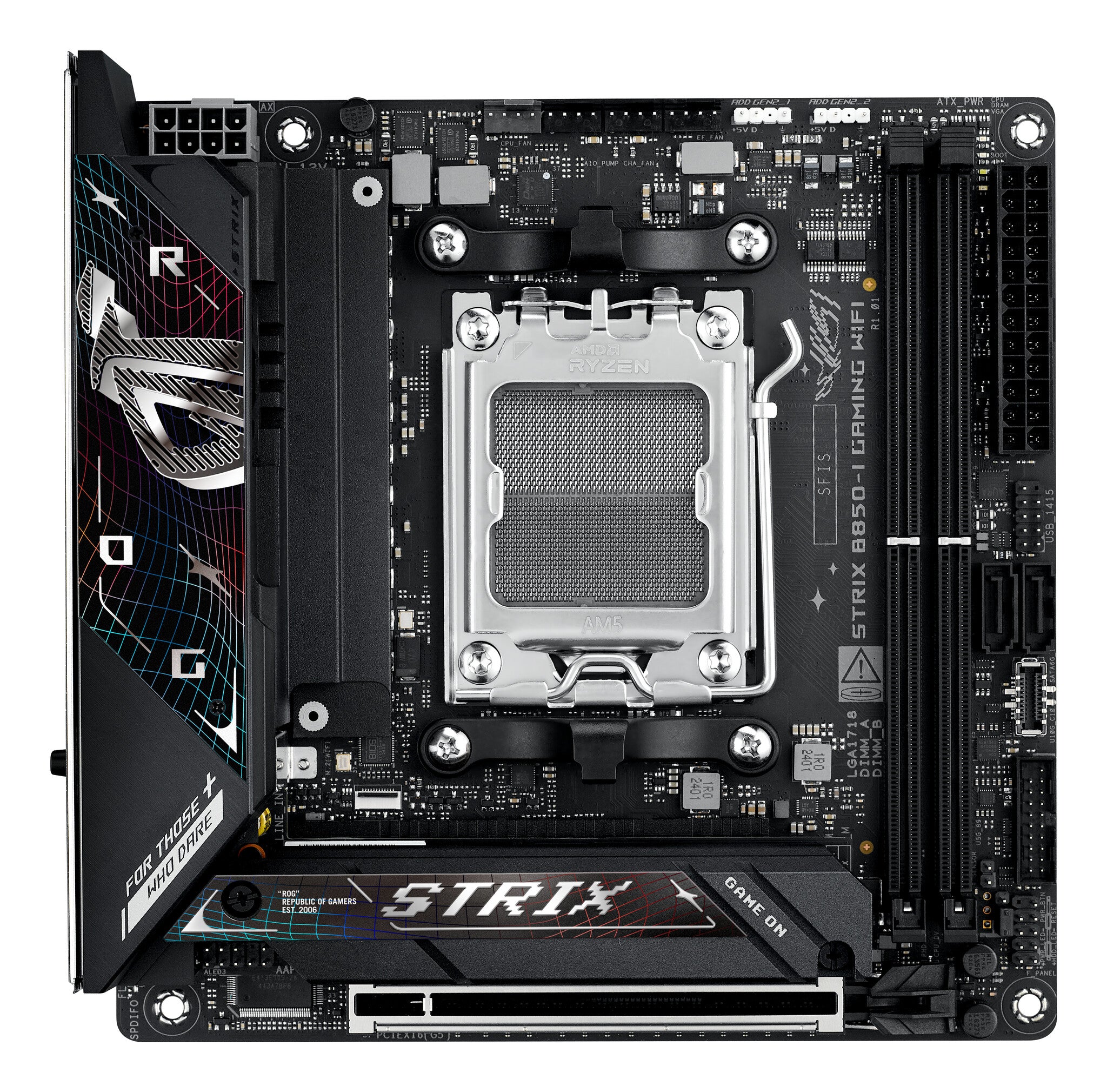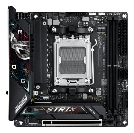 The ROG Strix B850-I Gaming WiFi integrates cutting-edge technology into a sleek mini-ITX form factor. It features PCIe® 5.0 slots for graphics and storage, dual-channel DDR5 slots and robust power delivery for top-tier gaming and heavy workloads. Meanwhile, advanced cooling solutions maintain peak performance, and WiFi 7 ensures ultra-fast connectivity. This platform delivers the power and connectivity that advanced AI PC applications demand.