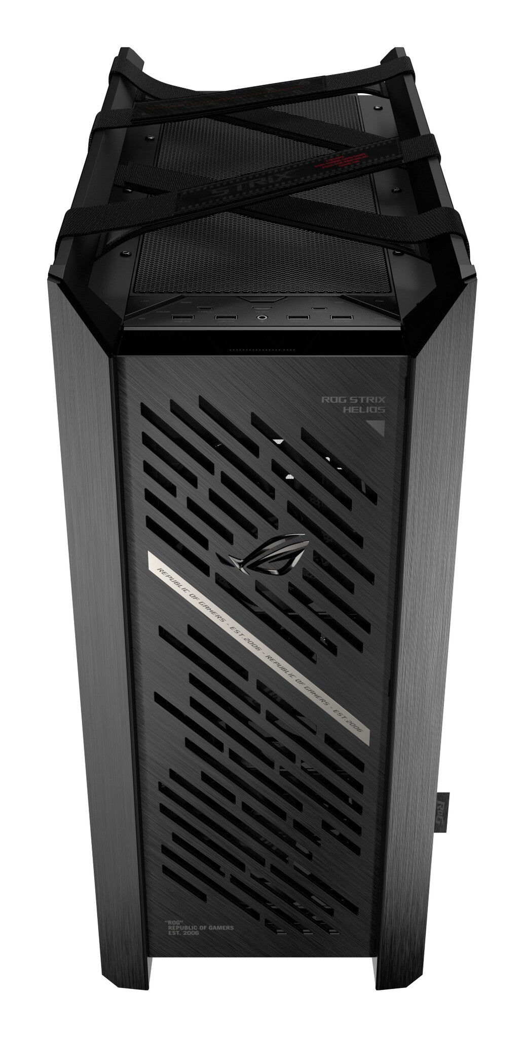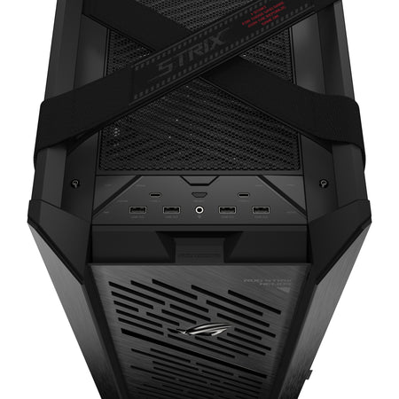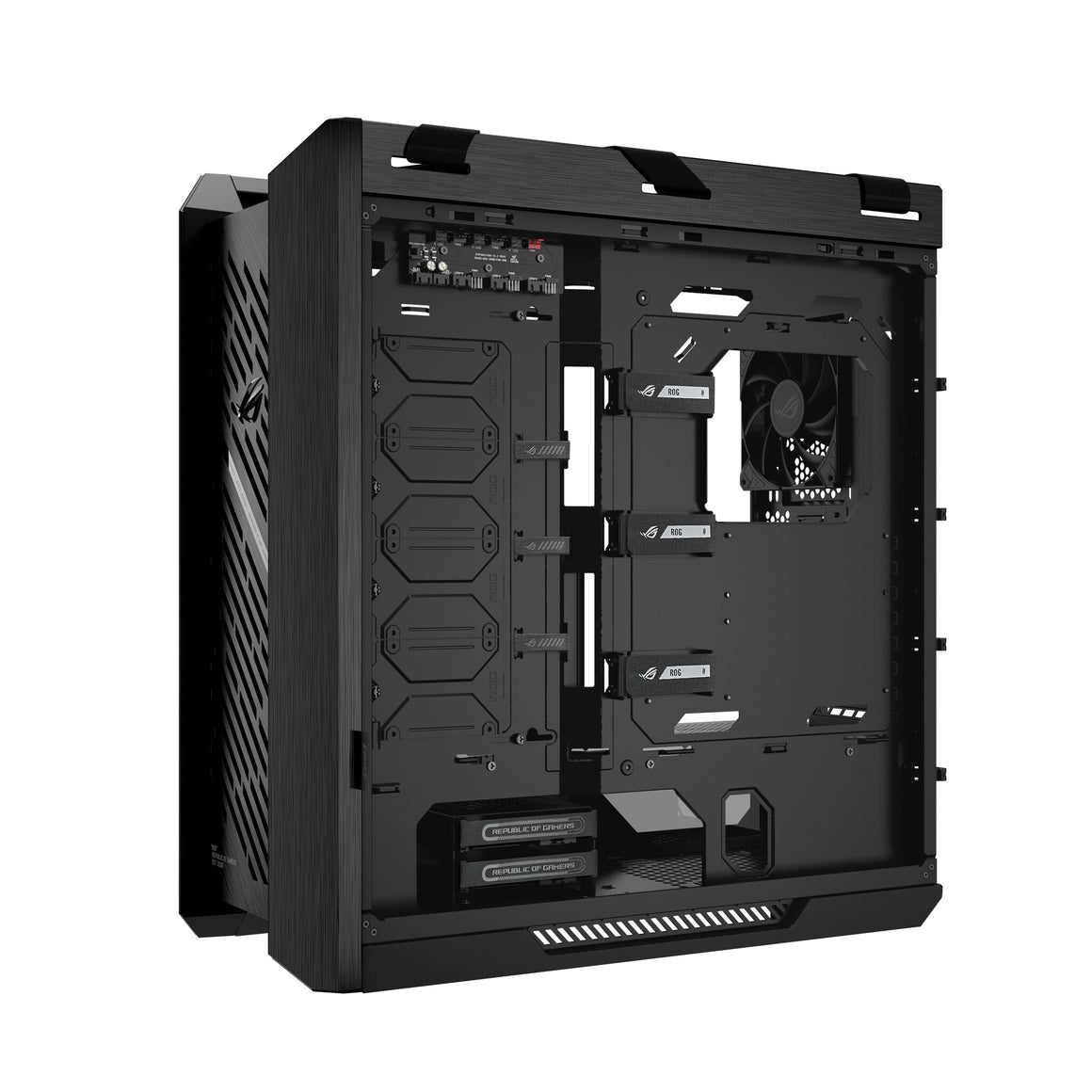 The front panel, Velcro straps and drive cage all feature the distinctive ROG logo, communicating futuristic luxury and elegance.