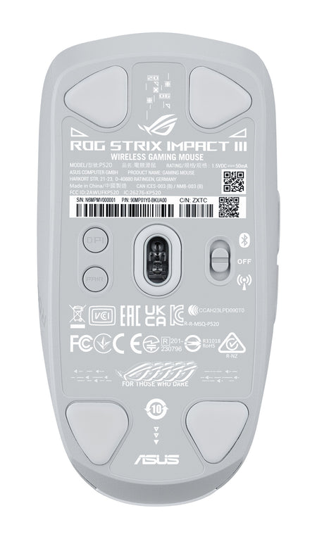 Weighing just 57 grams and a form factor optimized for grip comfort and portability, the ROG Strix Impact III Wireless is the ideal mouse for gaming on the go. Its ROG AimPoint optical sensor ensures precise tracking, while both ROG SpeedNova wireless and Bluetooth® modes ensure outstanding battery life and instantaneous control for unrivaled accuracy.