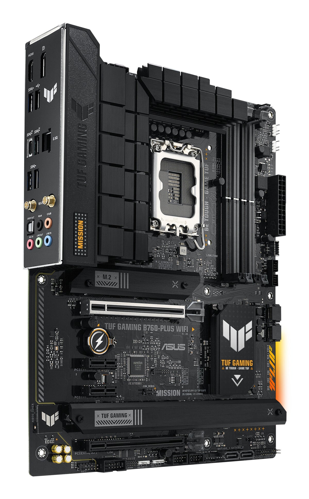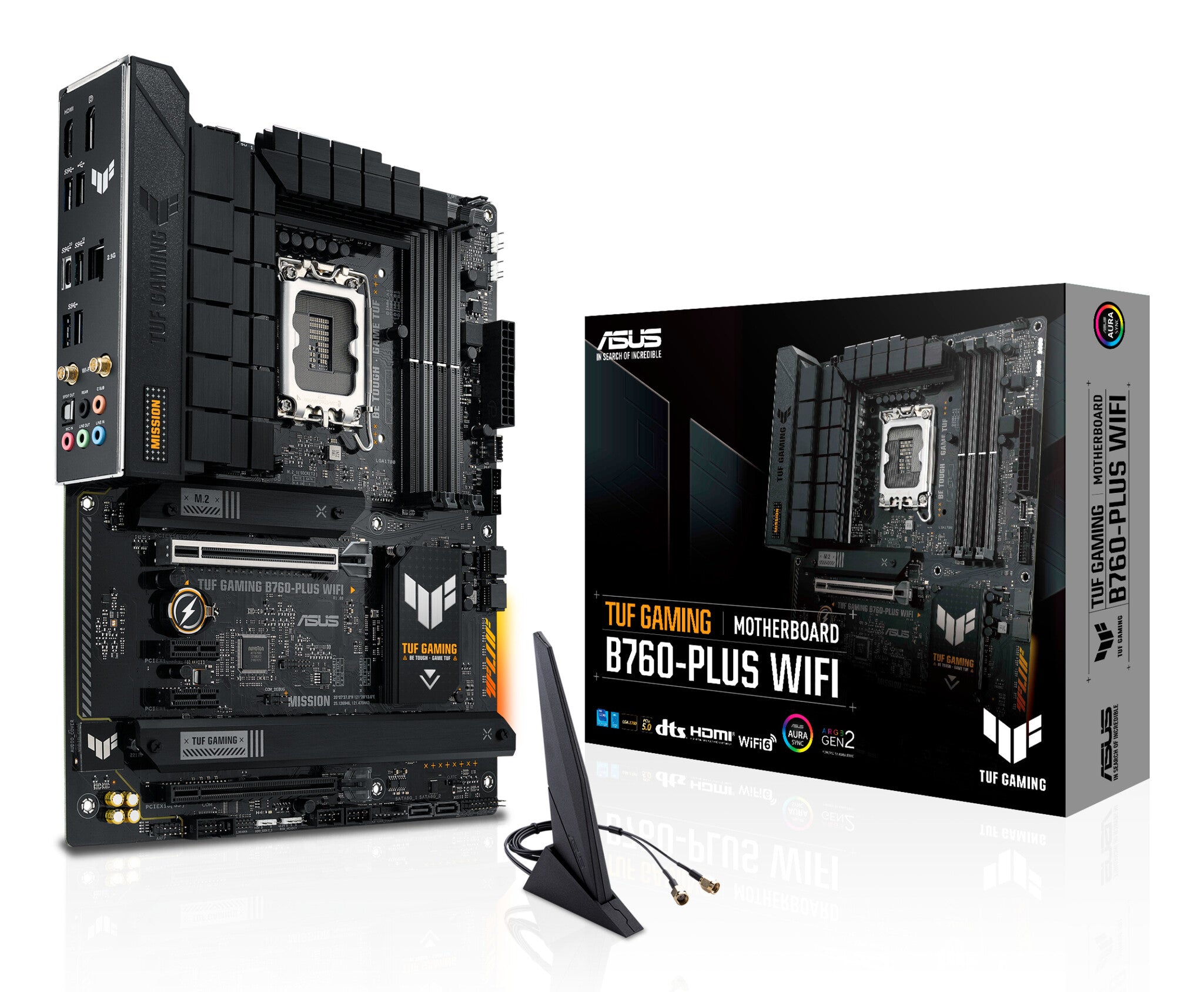 TUF GAMING B760-PLUS WIFI takes all the essential elements of the latest Intel processors and combines them with game-ready features and proven durability. Engineered with military-grade components, an upgraded power solution and a comprehensive cooling system, this motherboard goes beyond expectations with rock-solid performance for marathon gaming. TUF GAMING motherboards also undergo rigorous endurance testing to ensure that they can handle conditions where others may fail. Aesthetically, this model incorporates an embossed nameplate and geometric design elements to reflect the dependability and stability that defines the TUF GAMING series.