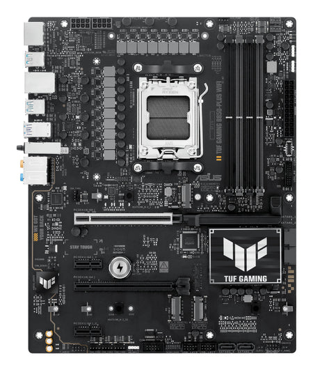 ASUS TUF GAMING B850-PLUS WIFI takes all the essential elements of the latest AMD Ryzen™ processors and combines them with game-ready features and proven durability. Engineered with military-grade components, an upgraded power solution and a comprehensive cooling system, this motherboard goes beyond expectations with rock-solid and stable performance for marathon gaming. TUF GAMING motherboards also undergo rigorous endurance testing to ensure that they can handle conditions where others may fail. This platform delivers the power and connectivity that advanced AI PC applications demand.