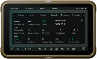 The AtomRemote app for iOS and macOS has an array of controls for Ninja via Atomos Connect. It lets you configure and control your Ninja from up to 15 meters away via Bluetooth LE while you define camera connections, select Gamma/EOTF and adjust Gamut settings. AtomRemote can control playback, select monitoring modes, apply custom 3D LUTs, and view image analysis tools, including exposure and focus. Output controls include options for 4K to HD, LUT preview and HDR output.