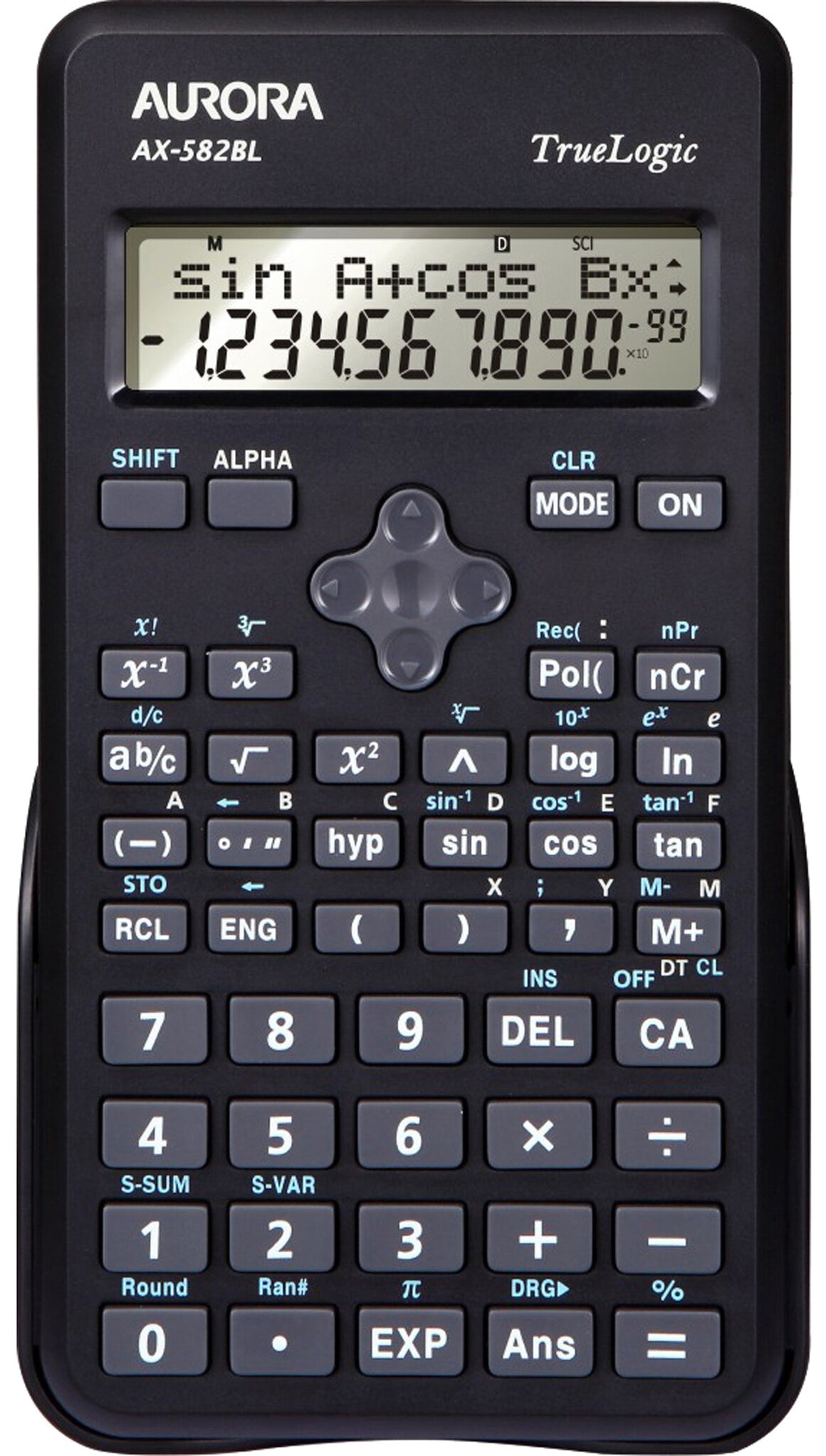 The Aurora AX-582BL combines a 2 line LCD display that shows both the sum and answer with a TrueLogic® Algebraic entry system which allows you to enter calculations in the order they are written. The AX582BL is great value scientific calculator suitable for use on all UK exams, that permit the use of calculators.