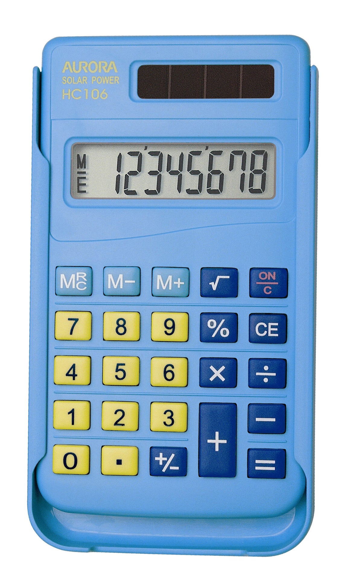 The Aurora HC106 is an ideal calculator for use within primary education and specifically Key Stages 1&2. It has a clear 8 digit LCD display to enable easy viewing and is entirely solar powered so no battery is required. The calculator is designed for ease of use and has a colour coded spacious keypad and durable hard plastic keys. Also included is a slide-on hard case which protects the calculator when not in use. Overall a quality product which is very good value for money and is ideal for learning.