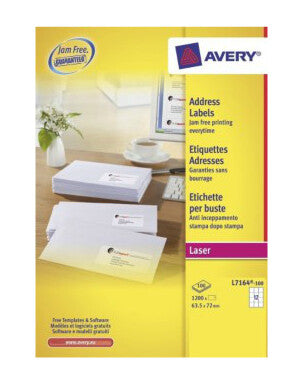 Mailings are made easier when you use the unique QuickPEEL™ feature on these 12 to a sheet white address labels. You simply divide your favourite 12 labels per sheet along the perforation to expose the label edges and then peel and apply to your envelopes. You can of course also peel and apply each label in the normal way. Avery® eco-friendly QuickPEEL™ laser labels don’t just save you time, they can help protect the environment too as they’re made from FSC certified paper and can be recycled with your normal office paper waste. The value in this 100 sheet pack is great for large mailings and with the Avery JamFREE™ guarantee you’ll get peace of mind that there’ll be no printer jams holding things up either. Did you also know that you can create bespoke labels by adding your own designs, images and company logo’s onto all our A4 sheet labels?