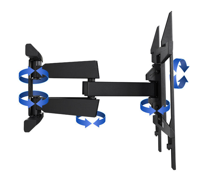 Designed to mount extra-large screens, this heavy-duty twin cantilever arm wall mount features an easy to tilt interface and three swivel points for quick, smooth repositioning of the screen - whether folded flat to the wall or at maximum extension. Featuring cover plates and integrated cable management for a tidy mounting solution, the BT8228 is ideal for both commercial and home installations.