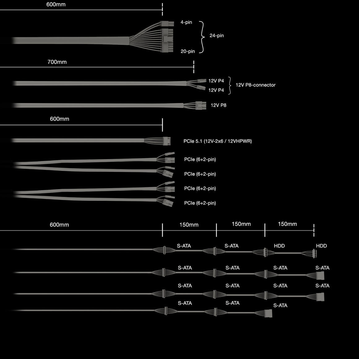 | SATA power cable length | 600,750,900,1050 mm |