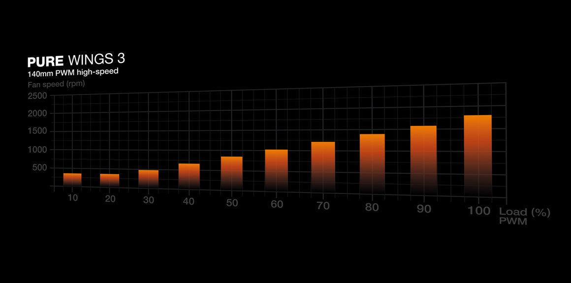 Pure Wings 3 140mm PWM high-speed are the perfect addition to demanding PCs with extraordinarily high performance and progressive features such as a speed-regulating closed loop motor. This makes the fan a versatile companion for your gaming system. Its iconic design lets anyone immediately recognize it as be quiet! fan and adds a touch of elegance to any configuration.