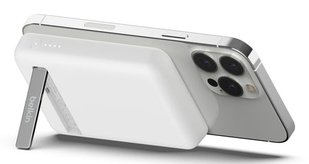An innovative pop-up stand allows you to keep streaming or scrolling while your phone charges.