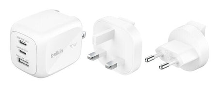 Speed and efficiency team up in this compact, portable GaN-powered wall charger. Professionals and travelers will appreciate its 70W of power plus the ability to charge 3 devices at once. Power your wanderlust with one charger for your phone, laptop, earbuds, Apple Watch and tablet.