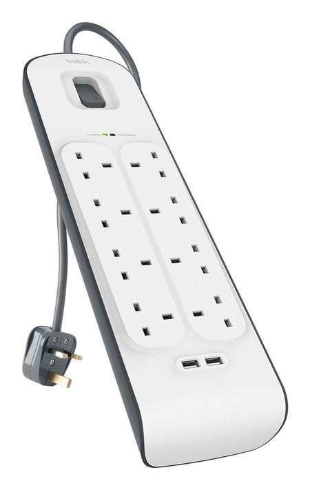 The Belkin BSV604AF2M are surge strips that feature six (6) extra outlets and two (2) 2.4A USB ports ideal for charging tablets and smartphones at the fastest speeds. Whenever voltage fluctuation or unexpected power surges occur, these inexpensive surge strips provide temporary power to your DVD player, gaming console, speakers and other medium sized appliances – protecting them from permanent damage or data loss.