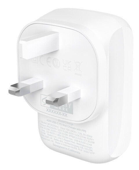 Fast charge an iPhone or Samsung smartphone while you charge another device at the same time with our Dual Wall Charger 42W. Dual ports include a 30W USB-C port and a 12W USB-A port. It’s USB-C PD 3.0 certified to deliver fast charging of 0-50% in 21 minutes for iPhone† or 0-50% in 26 minutes for Samsung.
