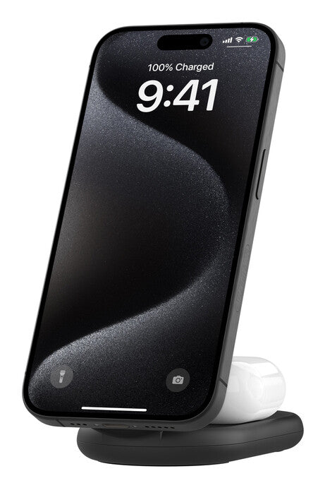 Get 15W of fast wireless charging to your iPhone 16/15/14/13/12 and 5W to your AirPods with our ultra-convenient foldable charging stand. Leveraging Qi2 technology, the charging pad offers a secure, aligned magnetic connection for iPhone and up to twice the charging speed.