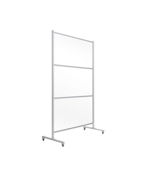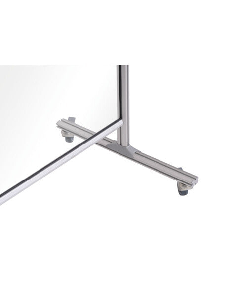 Transparent self-standing space dividers are an important tool to help people maintain contact while acting as a protective shield. This Glass Panel Divider is integrated into a sturdy aluminium structure and easy glide castors give full mobility.