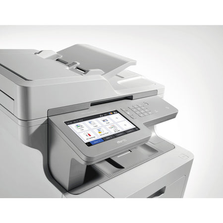 The speedy new MFC-L9570CDW, enables you to easily improve efficiency and productivity. Enhanced document scanning and an Automatic Document Feeder that holds up to 80 sheets of paper, offer a quick and simple way to scan direct to the cloud or your network. With the touch of a button, you can also customise the touchscreen with your own time-saving shortcuts, while longer-life cartridges mean more time working and less time changing toner. And if your business grows, the MFC-L9570CDW can grow with it, providing expandable lower and tower paper trays that give you extra capacity