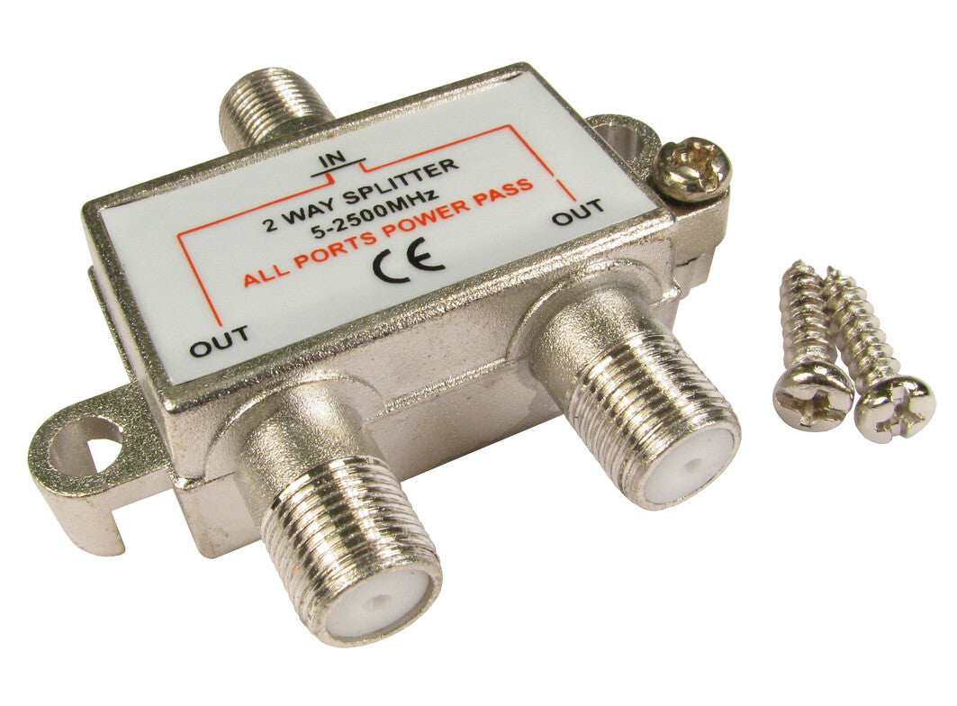 Our F Connector splitter units allow the user to split an RF coaxial signal from one source to two devices. For example; one satellite dish to two Sky boxes.