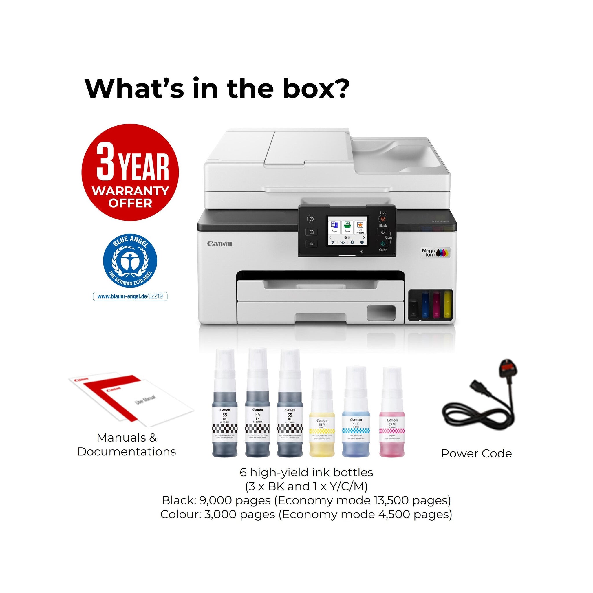 Included cartridge capacity (economy mode, black) |