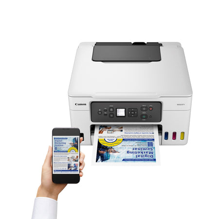 Print large volumes of high-quality business documents while making huge savings on CPP and TCO with this refillable and easy to use 3-in-1 MegaTank-equipped MAXIFY GX printer.